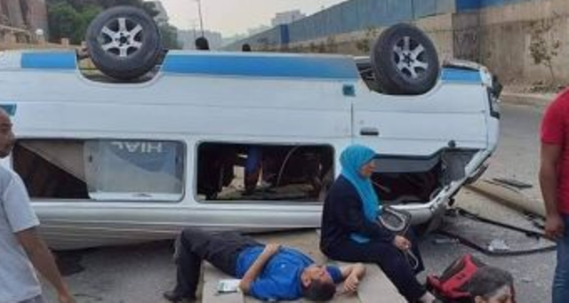 إصابة 5 في انقلاب ميكروباص واصطدامه بالحاجز الخرساني فى سوهاج