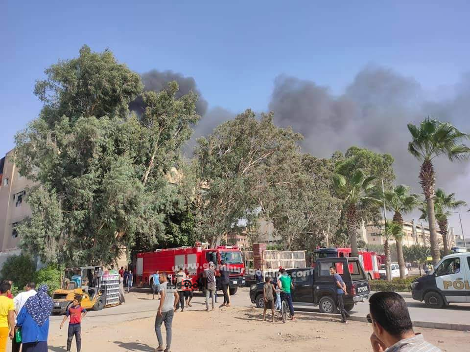 الحماية المدينة تدفع ب ١٢ سيارات اطفاء للسيطرة على حريق مصنع كيماويات بالعاشر من رمضان
