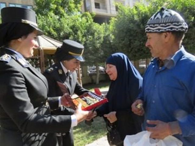 الداخلية تشارك المواطنين الاحتفال بعيد الفطر وتهديهم عبوات كعك