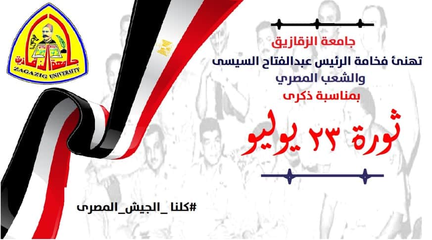 رئيس جامعة الزقازيق يهنئ الرئيس عبدالفتاح السيسي بمناسبة ذكرى ثورة 23 يوليو المجيدة