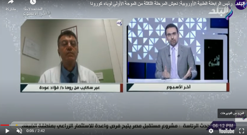رئيس الرابطة الطبية الأوروبية: نعيش المرحلة الثالثة من الموجة الأولى لكورونا.. فيديو