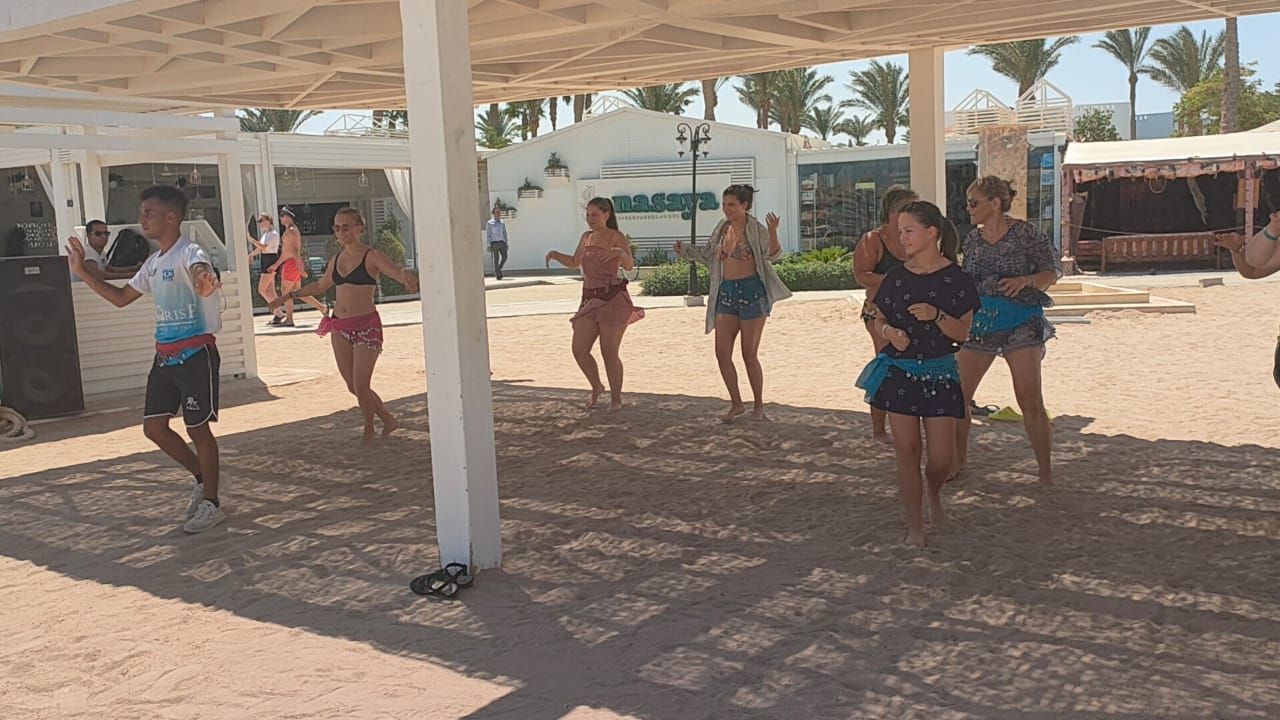 سائحات يتلقين دروسا في الرقص الشرقي على شواطئ الغردقة