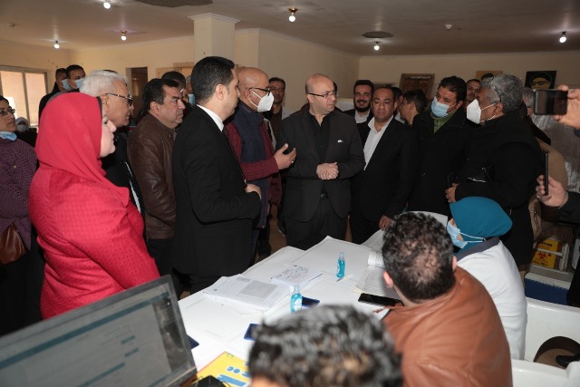 محافظ بني سويف يتفقد حملة التطعيم بلقاح كورونا بالساحة الشعبية بالفشن