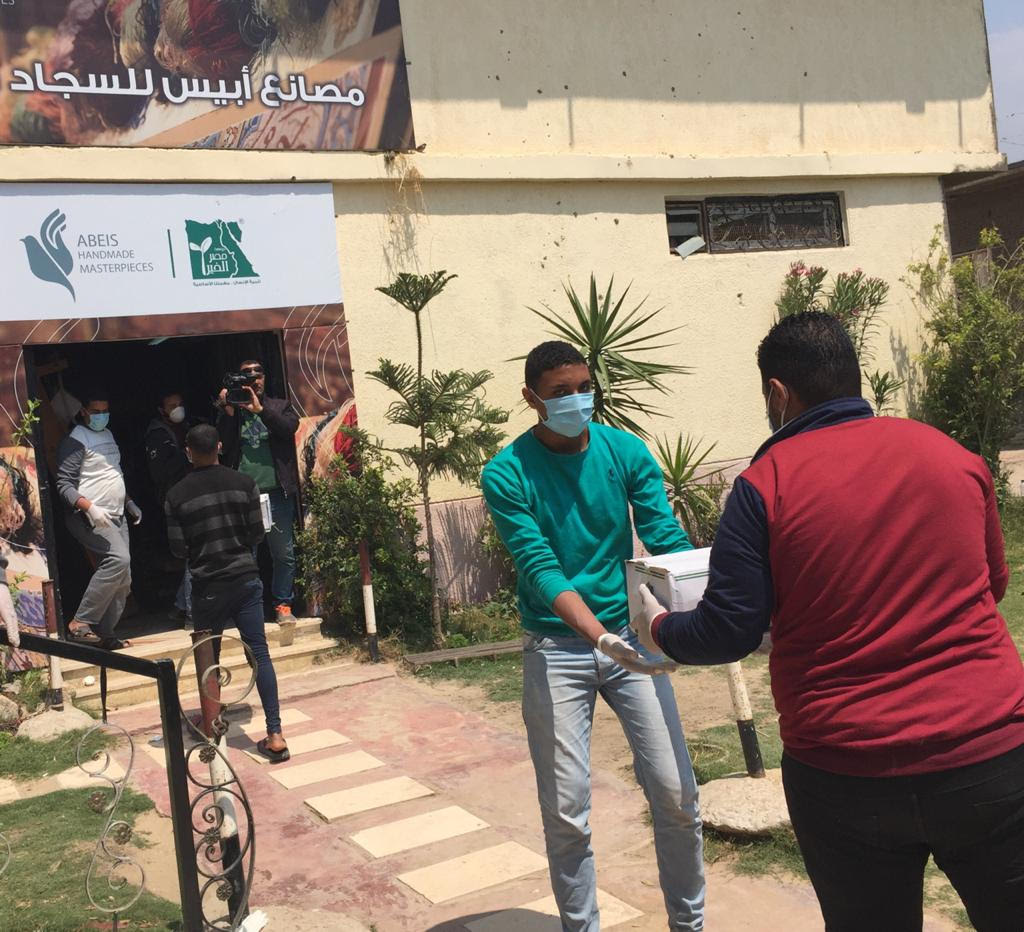 مصر الخير توزع شنط حماية طبية وكراتين مواد غذائية على العاملين بمصانع أبيس السجاد والكليم
