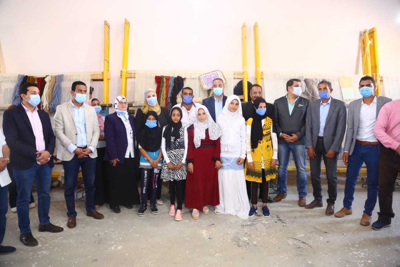 وزيرة التضامن ومحافظ الفيوم يتفقدان مصنع إنتاج السجاد بمركز يوسف الصديق