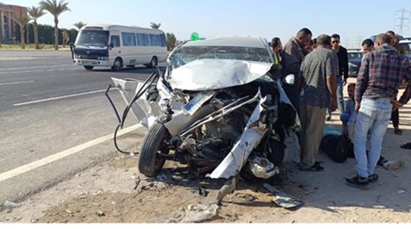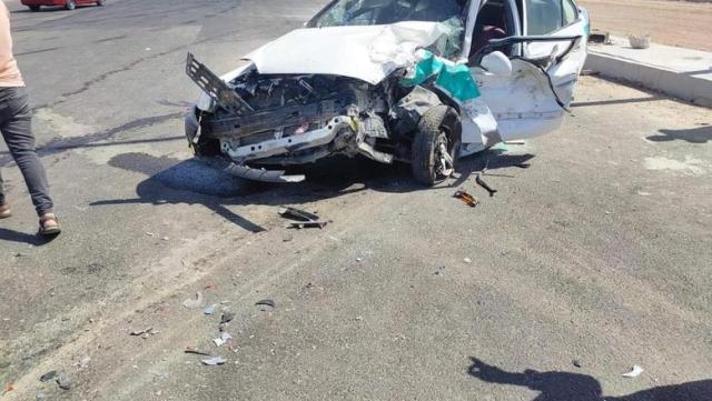 إصابة 5 إثر تصادم 3 سيارات على طريق السخنة بالسويس
