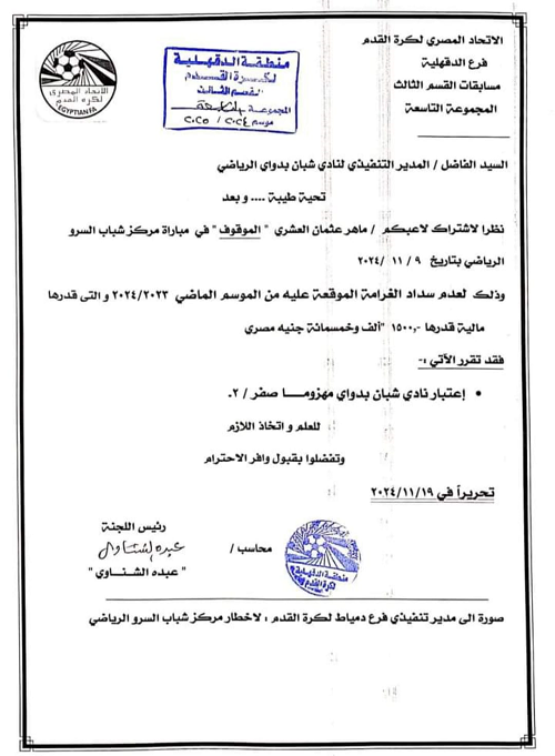أهلي فارسكور قطع الكهرباء وخسارة السرو وكفر البطيخ