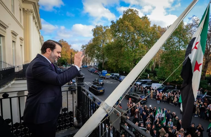 الشيباني يرفع العلم السوري فوق السفارة السورية في لندن