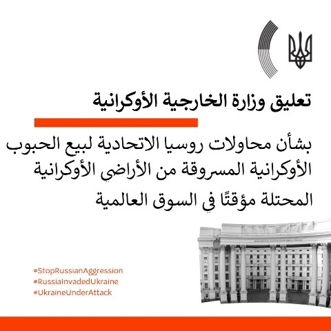 اوكرانيا تدين محاولات روسيا لبيع الحبوب من الأراضي المحتلة في السوق العالمية