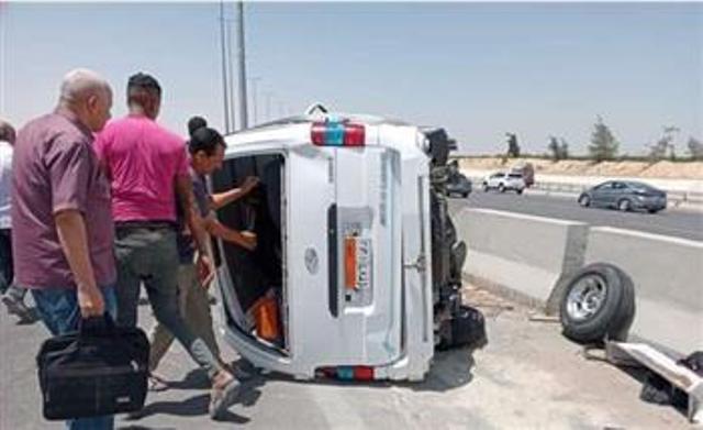 إصابة 13 شخصًا في حادث انقلاب سيارة بالطريق الصحراوي الشرقي