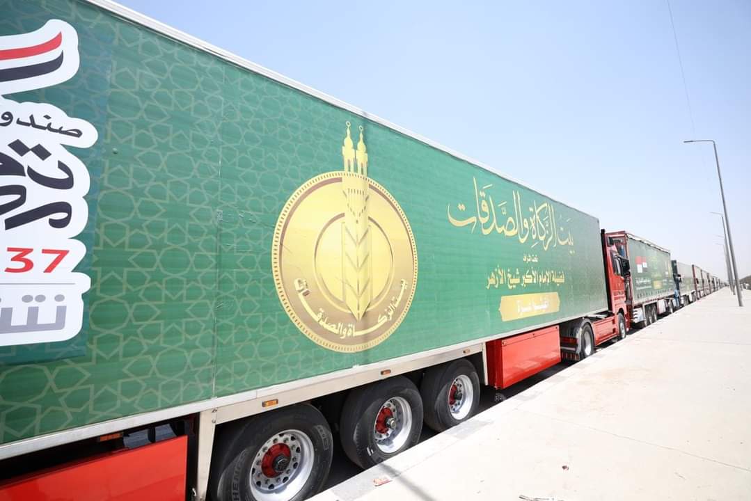 شيخ الأزهر يتفقّد قافلة بيت الزكاة والصدقات المتجهة إلى قطاع غزة