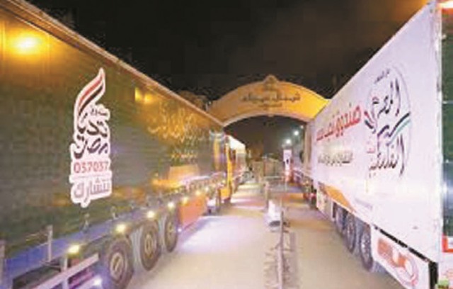 القافلة السادسة لبيت الزكاة والصدقات تعبر ميناء رفح