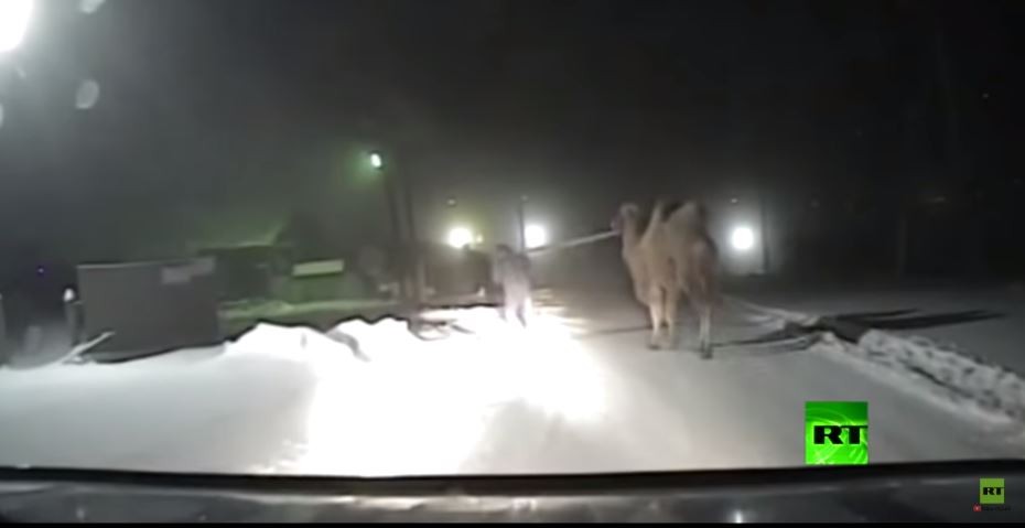 فيديو.. إنقاذ جمل من الموت بسبب الصقيع