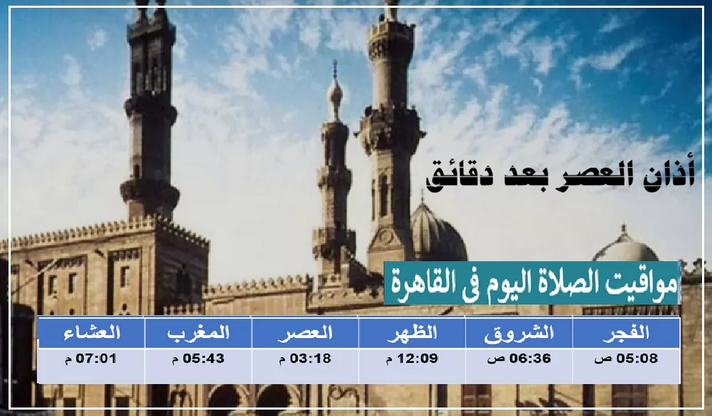 أذان العصر بعد دقائق ..تعرف على مواقيت الصلاة بالقاهرة والمحافظات