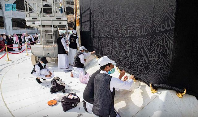 رئاسة شؤون الحرمين تنفذ الصيانة الدورية لثوب الكعبة المشرفة
