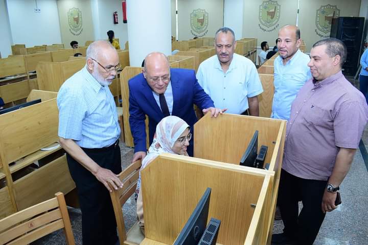 رئيس جامعة سوهاج يتفقد الامتحانات الإلكترونية لكلية الصيدلة