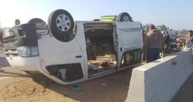 إصابة 5 إثر انقلاب ميكروباص بمحور الضبعة