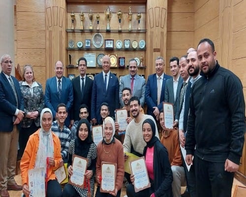 رئيس جامعة السادات يكرم الطلاب المتميزين والمتطوعين بمركز التطوير المهنى