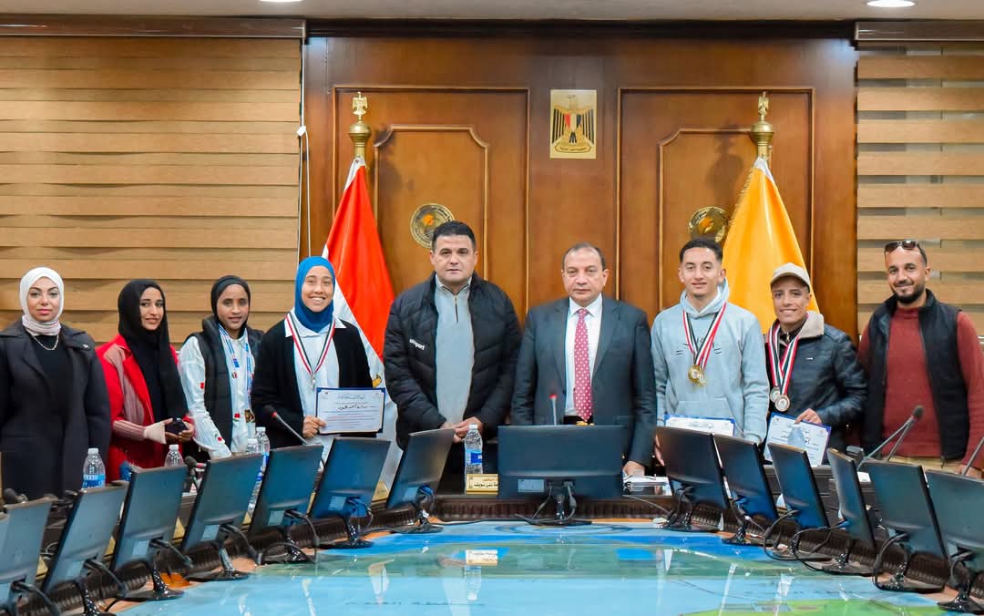 محافظ بني سويف يكرم الطلاب المتميزين بمناسبة عيد العلم