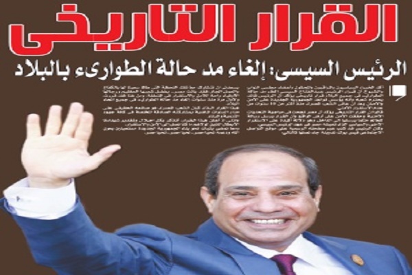 قرار تاريخي.. الرئيس السيسي يلغي مد حالة الطواريء بالبلاد
