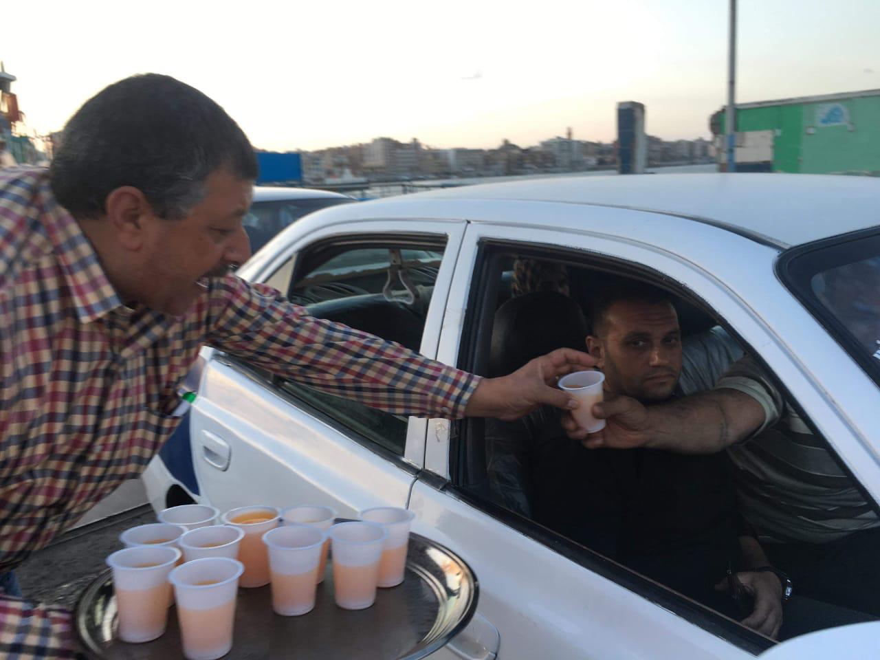 رئيس مدينه مصيف بلطيم يوزع العصائر والمياه على عمال النظافة