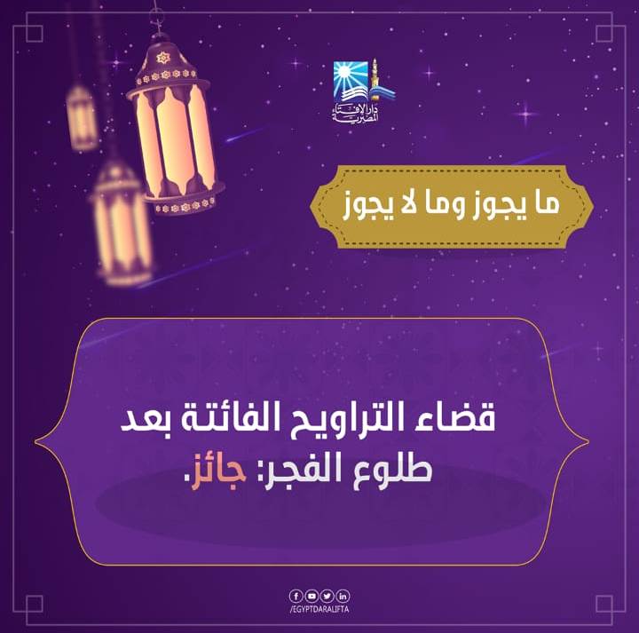 فتوى فى صورة.. هل يجوز قضاء التراويح الفائتة بعد الفجر