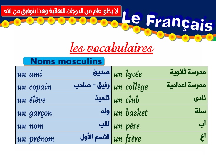 ننشر ملخص اللغه الفرنسيه للصف الاول الثانوي ترم ثاني