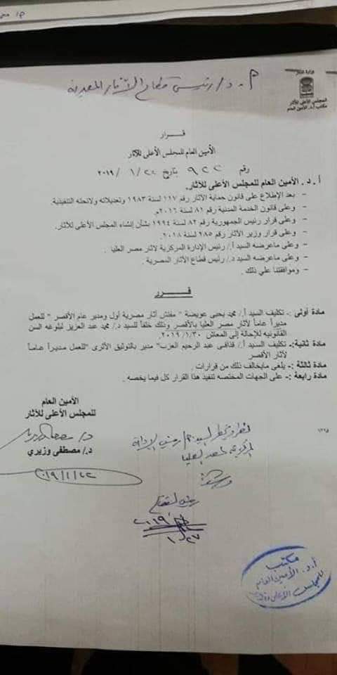 عويضة مديرا لآثار مصر العليا والقذافى للأقصر