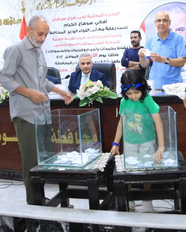 محافظ سوهاج يشهد القرعة العلنية للمرحلة الأولى لمحلات سوق ناصر