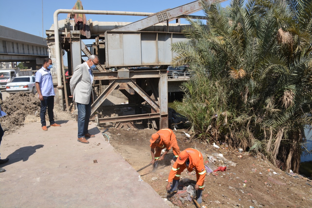 محافظ القليوبيه يتابع اعمال رفع تراكمات القمامه من علي ترعه الشرقاويه بميت حلفا