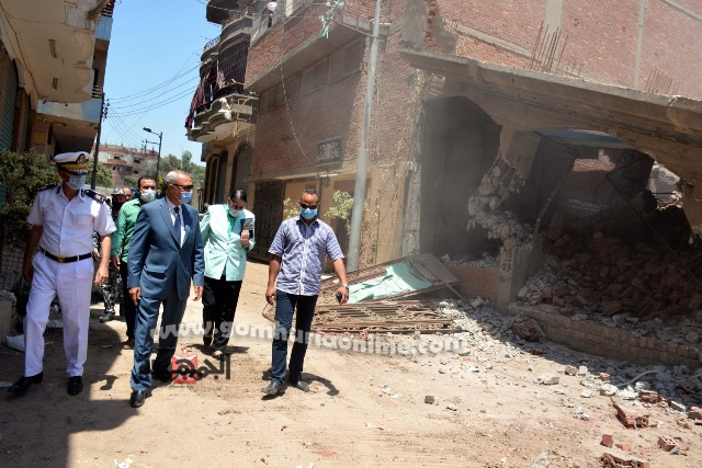 محافظ القليوبيه يشهد إزالة مبنى مخالف بدون ترخيص ببنها
