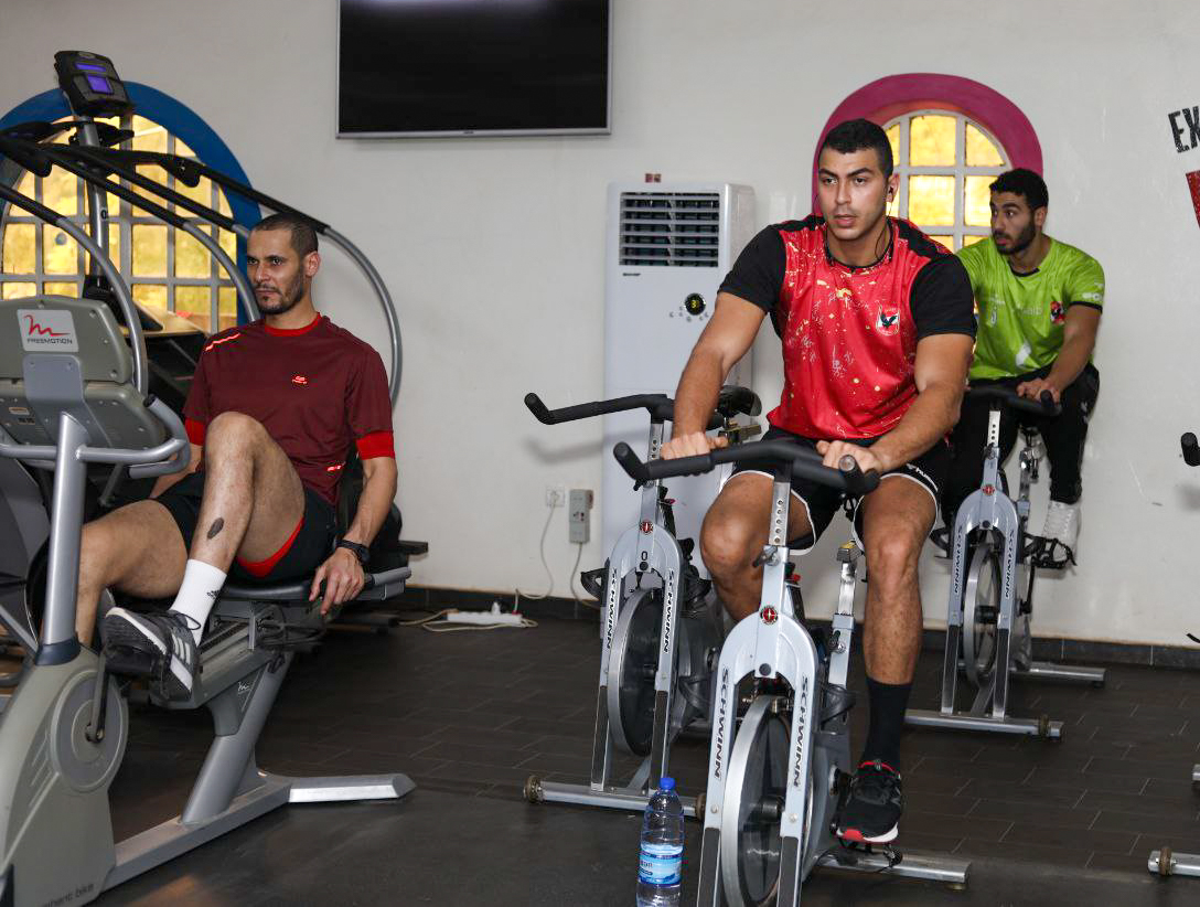 تدريبات بدنية قوية لـ رجال يد الأهلي في الجيم استعدادا لـ فاب الكاميروني