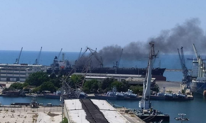 وقوع حريق على سفينة في مرفأ اللاذقية