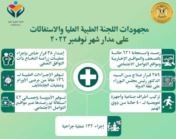 الوزراء :اللجنة الطبية والاستغاثات تستجيب لـ 1028 حالة في شهر