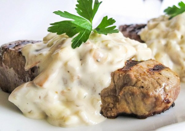 طبق اللحمة بالصوص الأبيض