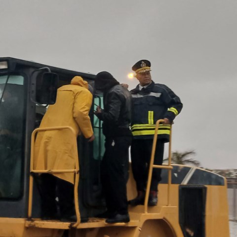 حكمدار القاهرة باللودر لإنقاذ المواطنين من الغرق بسبب الطقس السيء