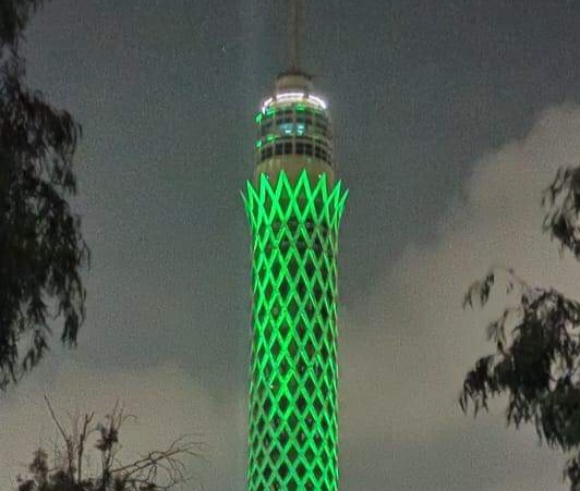 احتفالا باليوم العالمي للصحة النفسية.. برج القاهرة باللون الأخضر