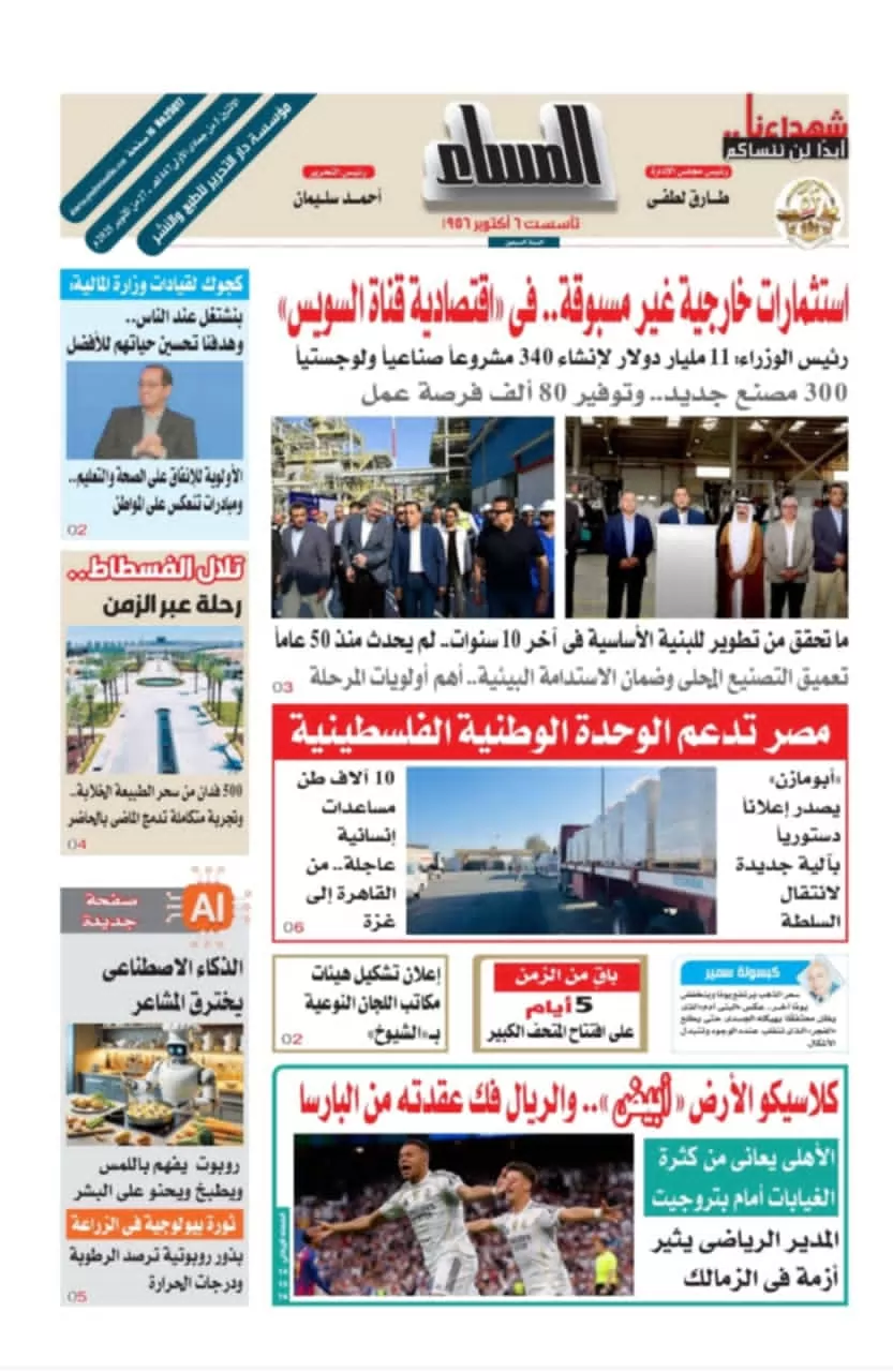 تقرأ في عدد " المساء" اليوم الاحد 7 من سبتمبر 2025