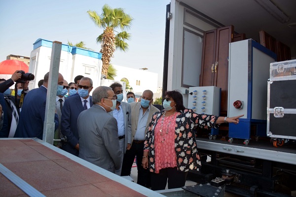 محافظ القليوبية يستقبل وزيري الانتاج الحربي والثقافة بمصنع حلوان لتفقد منظومة المسارح المتنقلة