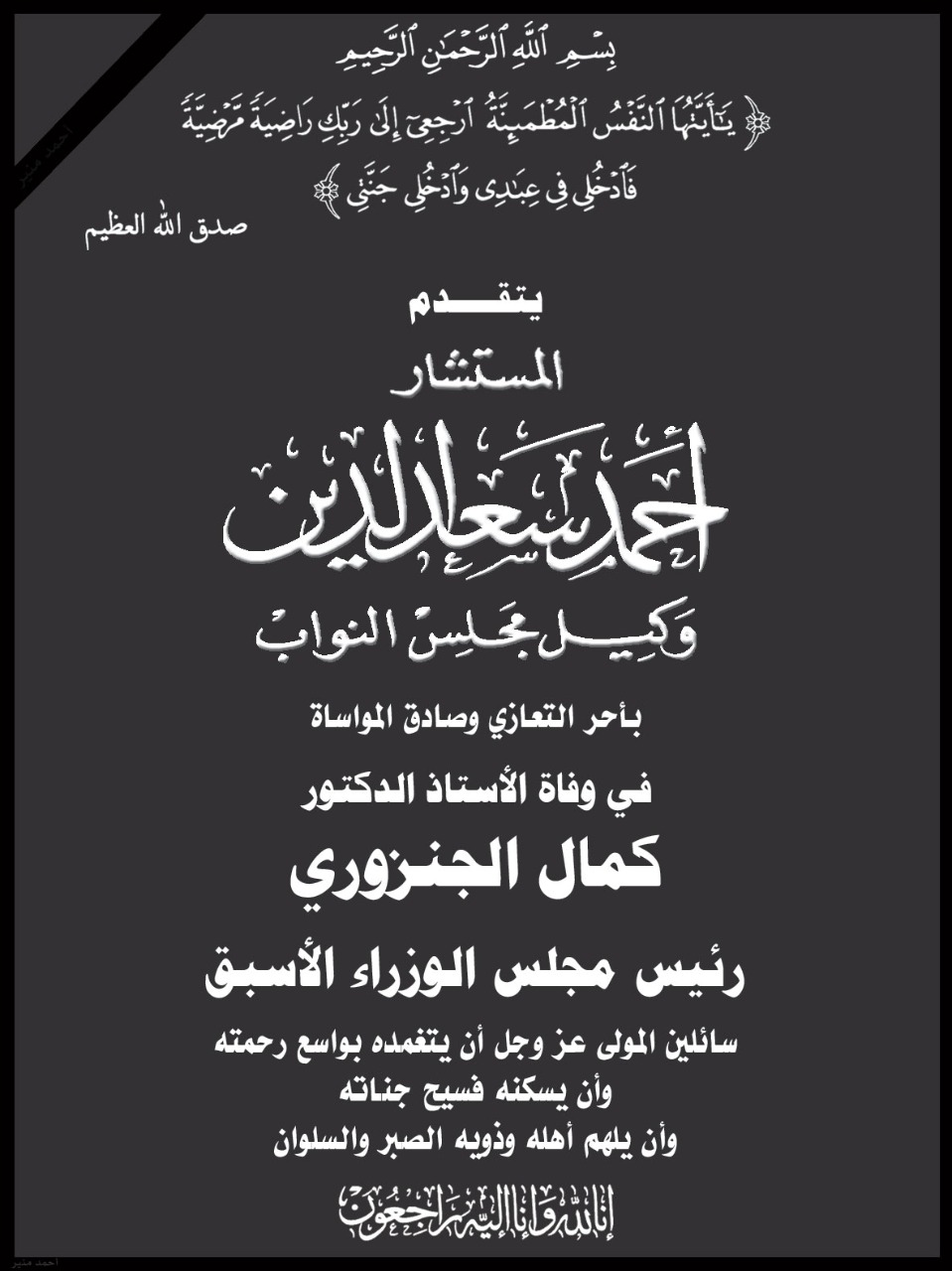 المستشار أحمد سعد الدين ينعي الدكتور كمال الجنزوري