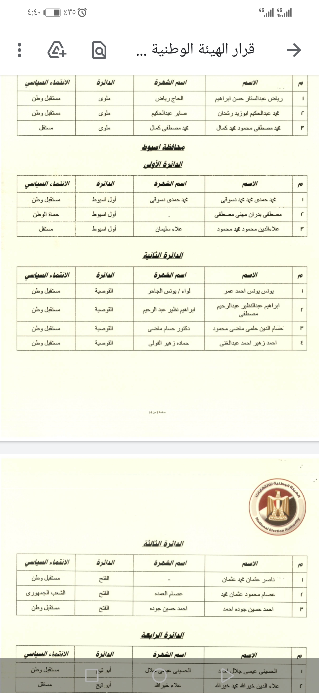 الهيئة الوطنية تعلن فوز 10 مرشحين من ائنلاف الاحزاب و 2 من المستقلين باسيوط