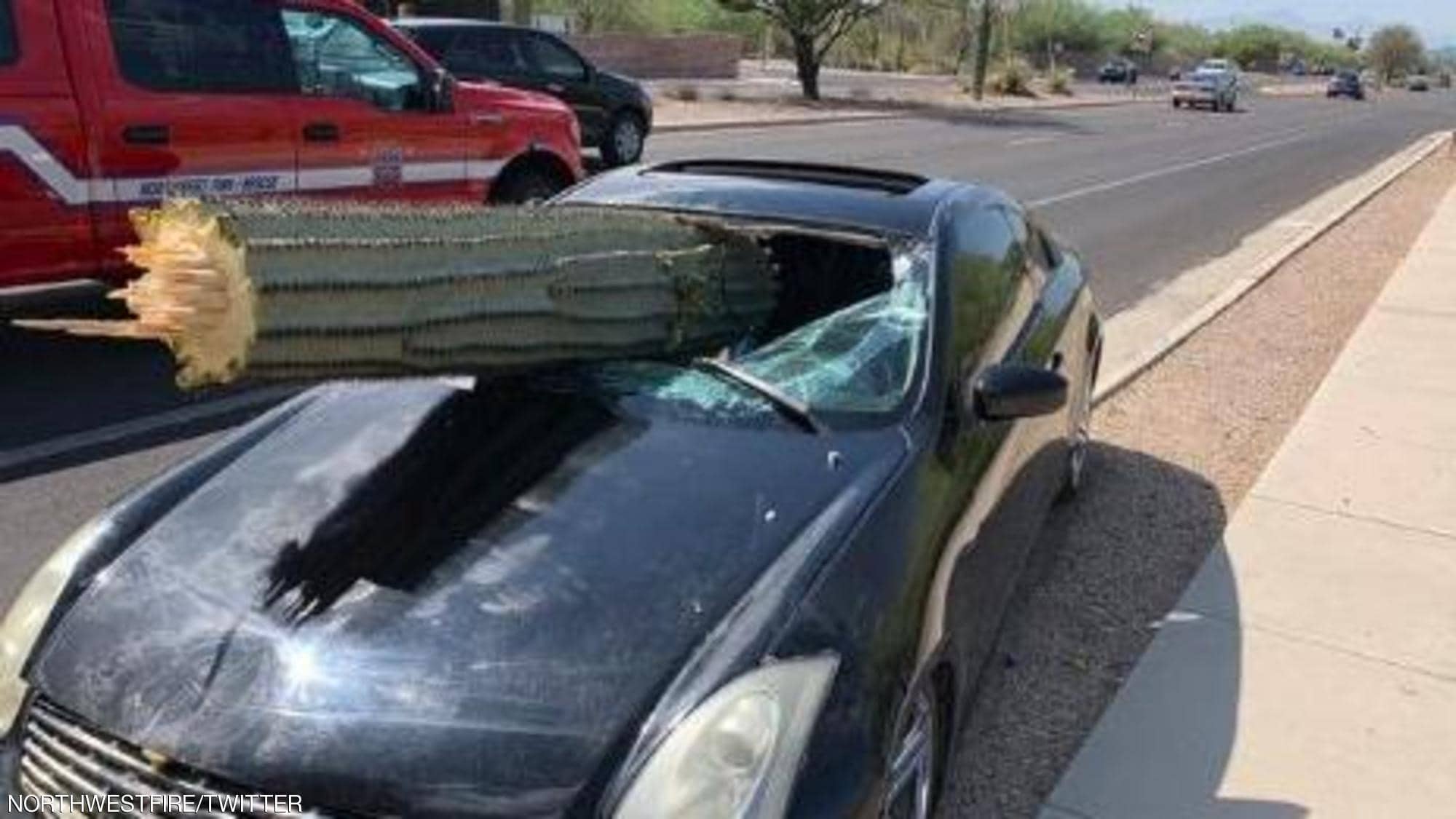 شجرة صبار تخترق سيارة.. و"المعجزة تتحقق"