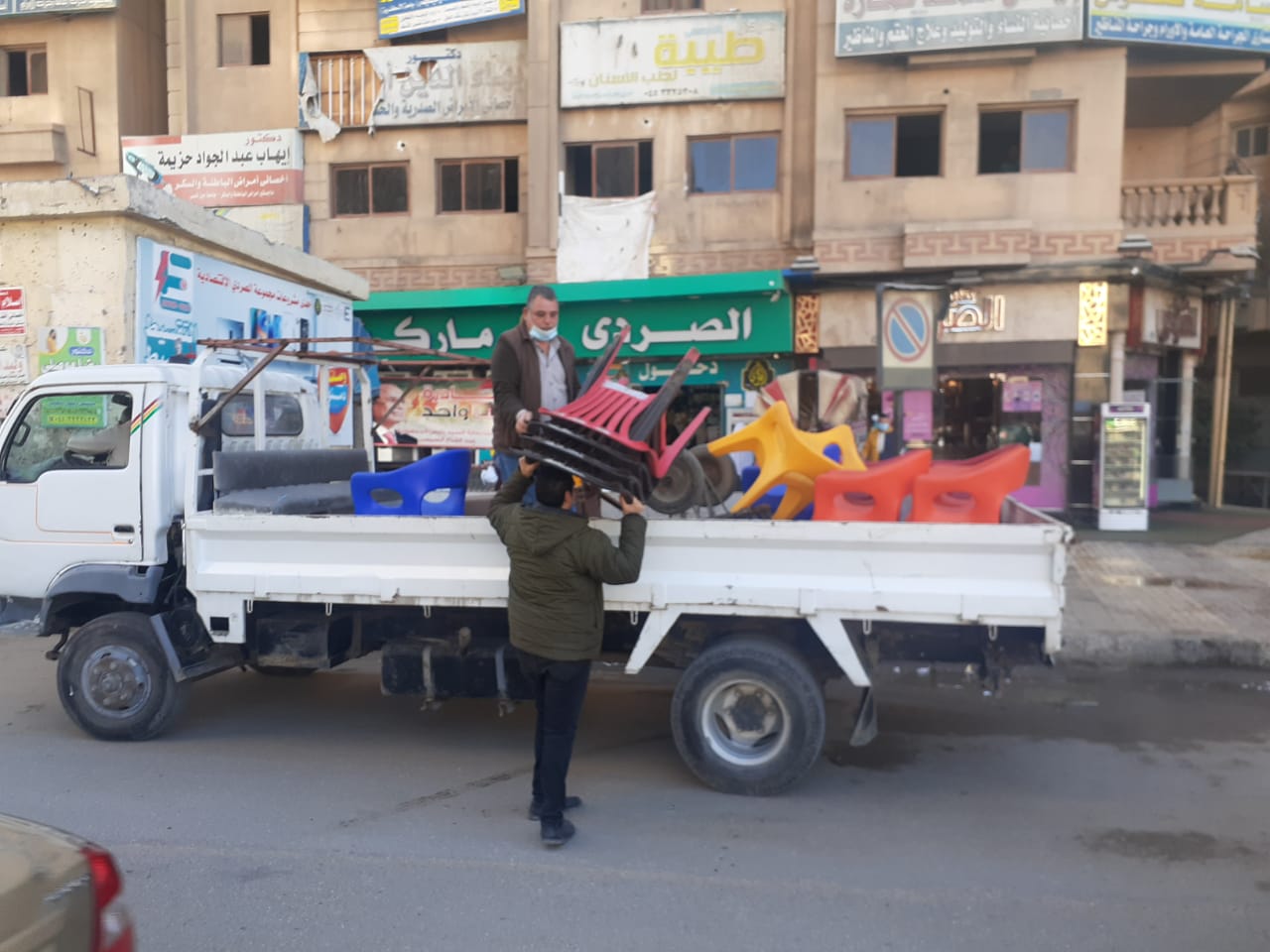 مصادرة شيش من المقاهي ورفع 25 إشغال خلال حملة مسائية في بلبيس