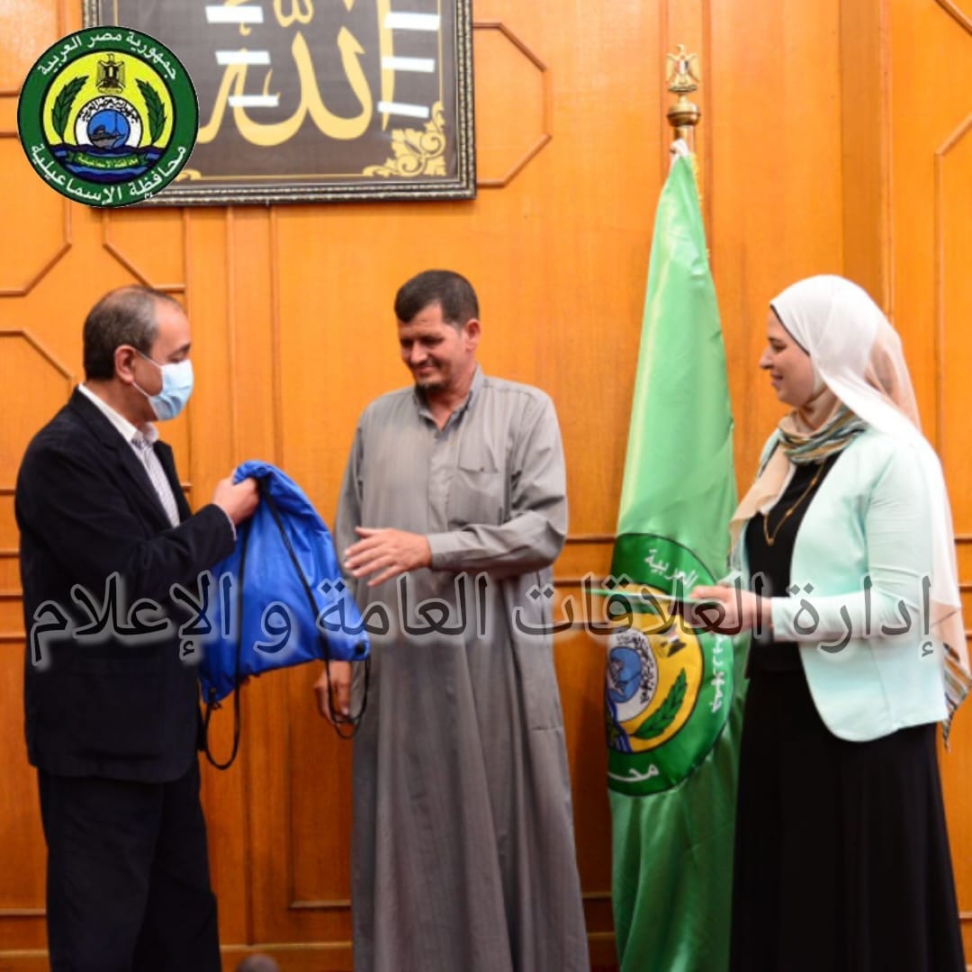 محافظ الإسماعيلية يهدي حُجَّاج قُرعة الجمعيات الأهلية و أُسَر الشهداء شنطة المناسك
