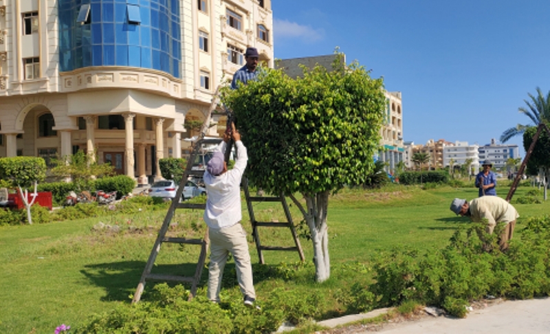 تجميل وتنسيق الحدائق والمناطق الخضراء بمدينة دمياط الجديدة