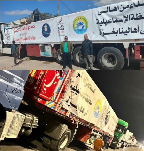 انطلاق اول قافلة اغاثة لشركات المنطقة الصناعية بالاسماعيلية لغزة