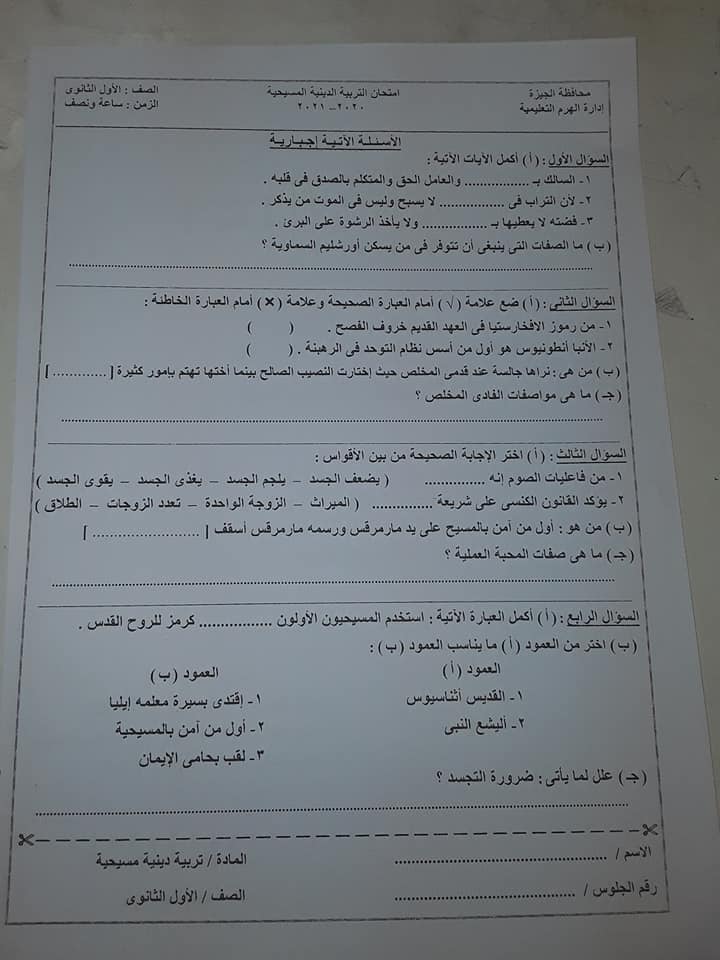 امتحان المواد غير المضافة للمجموع بالثانوية العامة بدون أسئلة مقالية