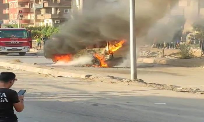 السائق ولع فى الميكروباص بالبنزين لخلافات مع زميله ببورسعيد