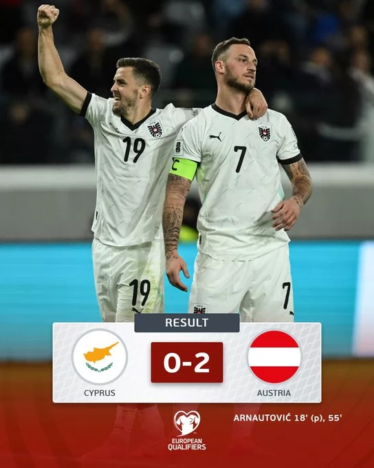النمسا تقترب من كأس العالم بثنائية في شباك قبرص