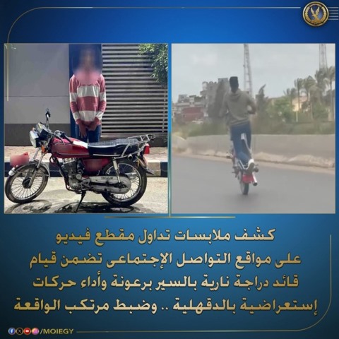 ضبط "استورجى" استعرض بدراجته النارية فى الدقهلية